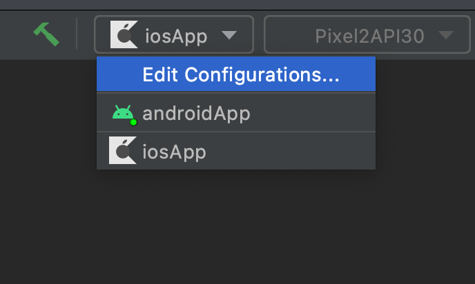 - Let’s run our iOSApp by selecting the Edit Configuration option and then Select iOS Application > iosApp and select your preferred iOS SDK or target, then click the OK button: