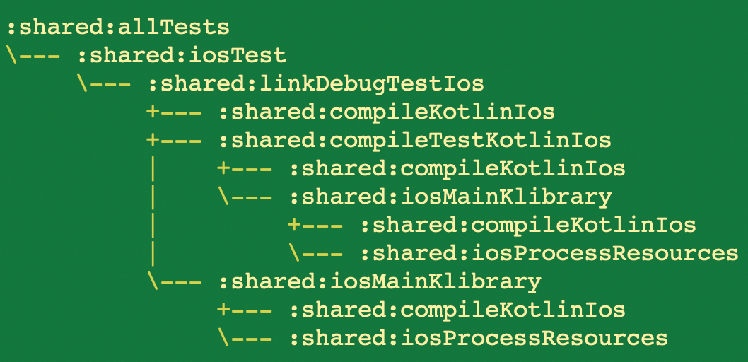 KMM projects contain Android, iOS, and Kotlin code, in the shared module. The purely native code can be tested in the same way as it is tested in native applications. However, the shared module is different. While the gradle test command would run standard Android tests, the cross-platform shared module tests use a different Gradle task, allTests . The iosTests Gradle task is a dependency of allTests but the test and allTests tasks are parts of different task hierarchies.