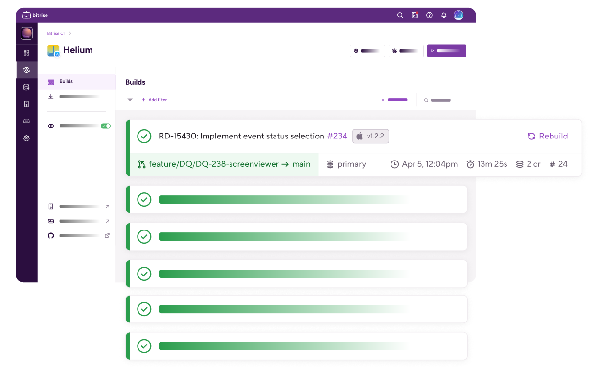 Get to green faster with Bitrise. No more babysitting your builds, no more pipelines held together with glue code and prayers. Just connect your repo and run your first mobile build within minutes.